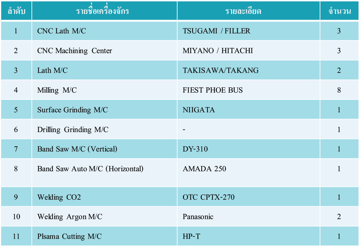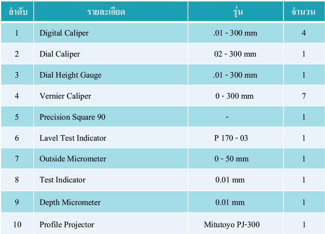 รายการเครื่องจักรและเครื่องมือวัด